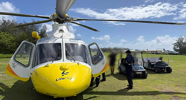 Photos showed the man sitting on a stretcher being assessed by LifeFlight critical care medical team before he was airlifted.