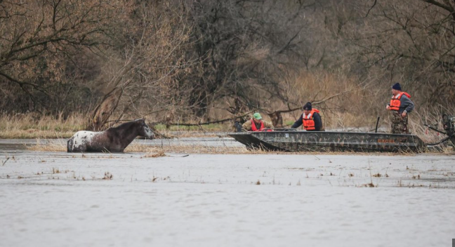 The Marengo Fire & Rescue Districts said on social media that the storms caused Coon Creek waters to overflow, stranding the horse in fast-moving water about 600 feet from shore.