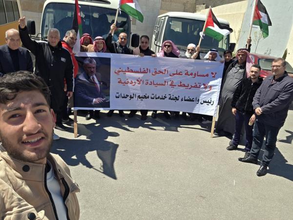 Participants raised slogans affirming their support for His Majesty King Abdullah II and the unified Jordanian position that Jerusalem is a red line.