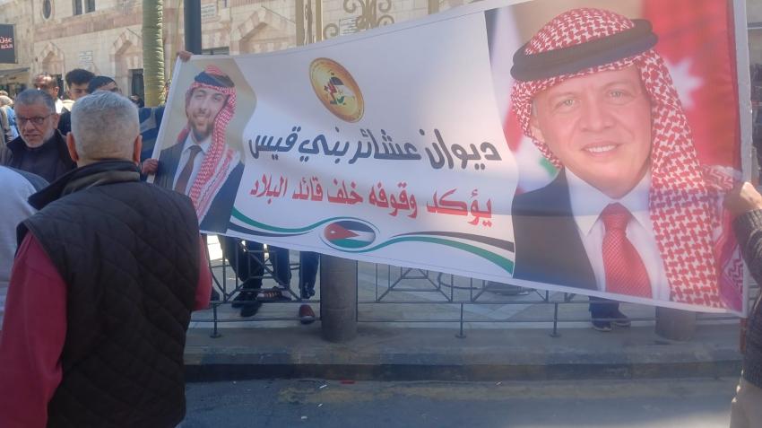 Ammon News - Popular and partisan marches took place in the downtown area of Amman this Friday in support of the King’s stance on the Palestinian cause.