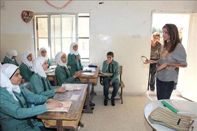 Queen Rania was greeted by enthusiastic screams of joy from the students who were surprised and ecstatic to see Her Majesty visit their school, check on their class rooms, and talk to them about their problems.