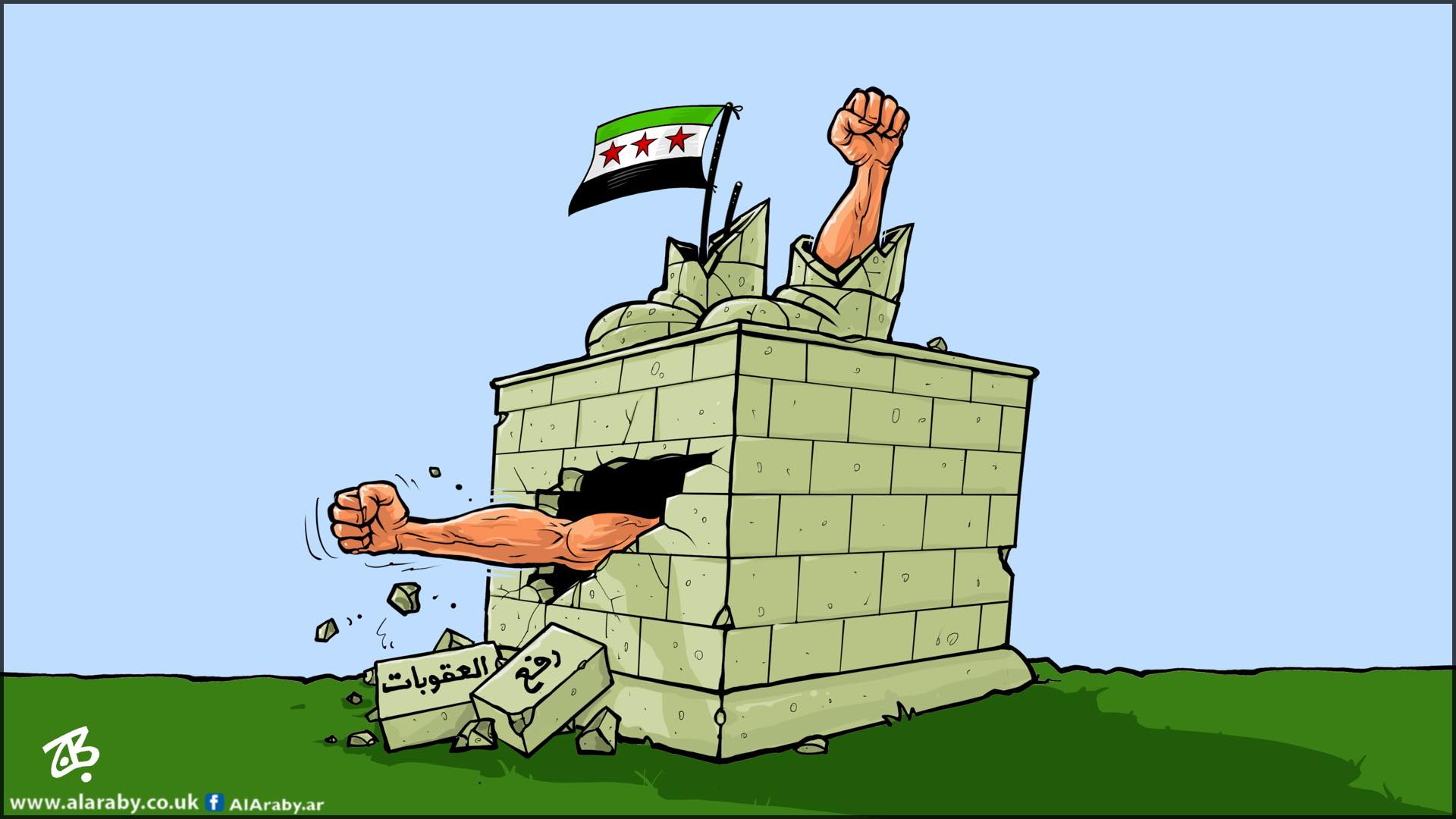 President Trump said on Tuesday, May 13, that he would lift U.S. sanctions on Syria, throwing an economic lifeline to a country devastated by nearly 14 years of civil war and decades of dictatorship under the Assad family. Caricature by Emad Hajjaj