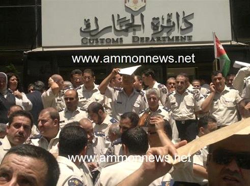 Over 1,000 of the Customs Department's employees protested in front of the department's headquarters in downtown Amman and briefly blocked the vital King Hussein Street, causing a major traffic jam in the area.
