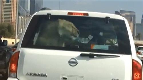 The nine-second clip, which was uploaded on video sharing site Youtube on Wednesday, shows an adult lion calmly pacing in the back of a Nissan 4x4 and then sitting down, while the car waits in traffic.
