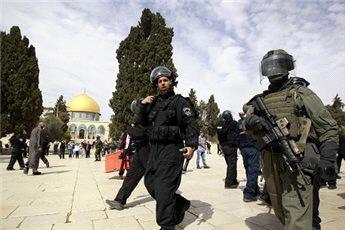 Several worshipers and Shariah Law students sustained bruises and one of them was treated at a clinic in the Aqsa compound.
