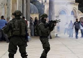 The Israeli army yesterday smashed a number of Al-Aqsa Mosque's doors and removed a number of its windows before spraying pepper gas on the worshippers inside the mosque, resulting in serious injuries to dozens of them.