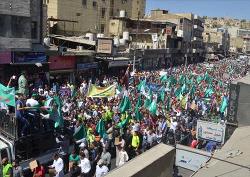 Participating in a march in downtown Amman that was organised by the Islamic Action Front (IAF) following Friday prayers, hundreds of angry demonstrators chanted slogans expressing their support for Al Aqsa Mosque and calling for action by Arab countries to protect Al Haram Al Sharif, the third holiest shrine in Islam.