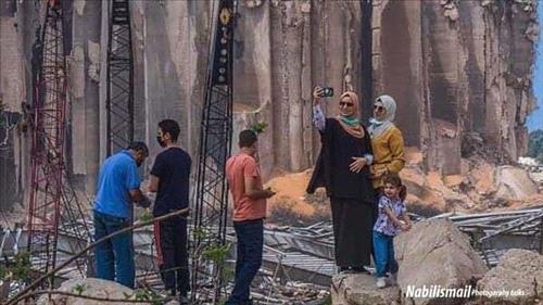 AMMONNEWS - Social media users have come under fire for posing in front of the site of the devastating Beirut blast as critics call out the latest example of “disaster tourism.”