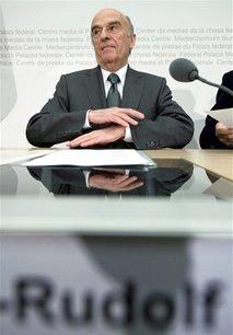 Photo: (AP)In this March 6, 2009 file photo, Swiss Federal President Hans-Rudolf Merz, head of the Federal Department of Finance, conducts a news conference in Bern, Switzerland.