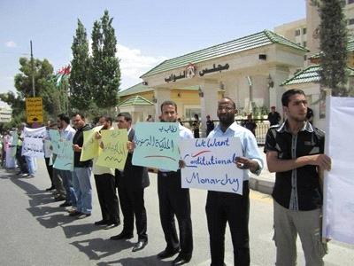 Friday's protest in front of the Parliament in central Amman was called for by the "Constitutional Monarchy Initiative," with protestors "sending a message to all concerned that the people want constitutional monarchy and self-rule."