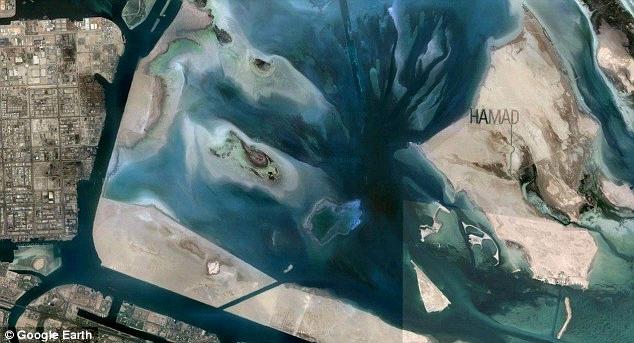 The word 'HAMAD' measures 1,000 metres high and is a staggering two miles long from the 'H' to the 'D' on the Al Futaisi island.