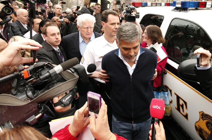 Clooney told reporters that it was his first arrest, "and let's hope it's my last."