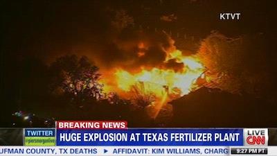 Ammon News - (CNN) A massive explosion at a fertilizer plant in the small Texas town of West left at least two people dead, sent dozens more seeking medical attention and prompted a widescale evacuation in the community of 2,600 people.