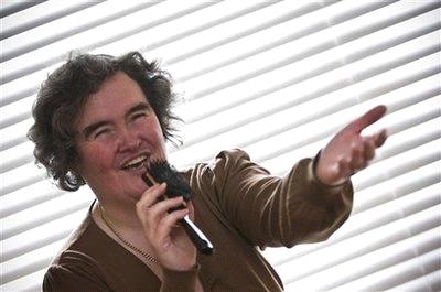 (AP Photo, File) - In this Thursday April 16, 2009 file photo Susan Boyle, whose performance on the television 'Britain's Got Talent' wowed the judges, poses singing with a hairbrush at her home in Blackburn, Scotland.