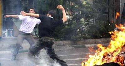 Photo: EDITORS' NOTE: Reuters and other foreign media are subject to Iranian restrictions on leaving the office to report, film or take pictures in Tehran Supporters of defeated Iranian presidential candidate Mirhossein Mousavi throw stones during a protest on a street in Tehran June 20, 2009. Mousavi said on Saturday he was "ready for martyrdom" in leading protests that have shaken the Islamic Republic and brought warnings of bloodshed from Iran's Supreme Leader.