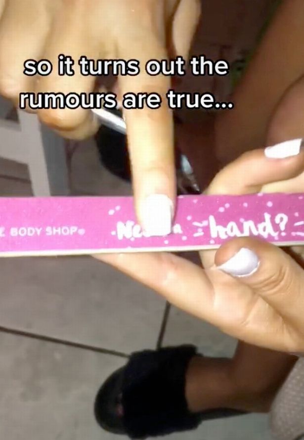The caption on the video says: "So it turns out the rumours are true..," and shows a woman peeling off the top to find another nail file layer below.