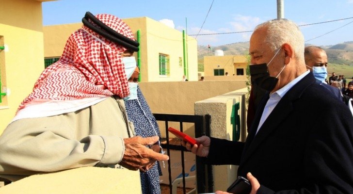 Royal Court Chief, head of the committee to follow up on the Implementation of His Majesty's Initiatives, Yousef Issawi, handed over the keys of the new homes to families in Ba'un in the Ajloun Governorate and in Al Mashare'a in Irbid Governorate, in the presence of Public Works and Housing Minister Yahya Kasbi, Social Development Minister Ayman Mifleh and the Governors of Ajloun and Irbid.