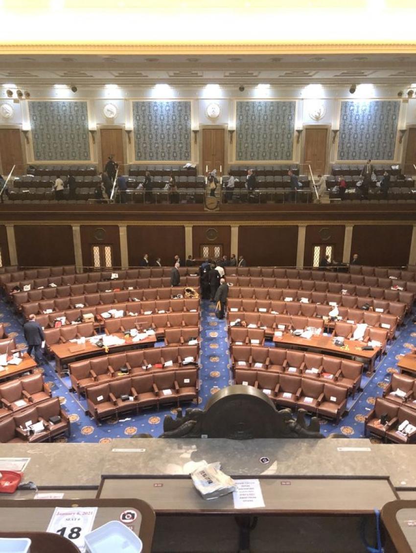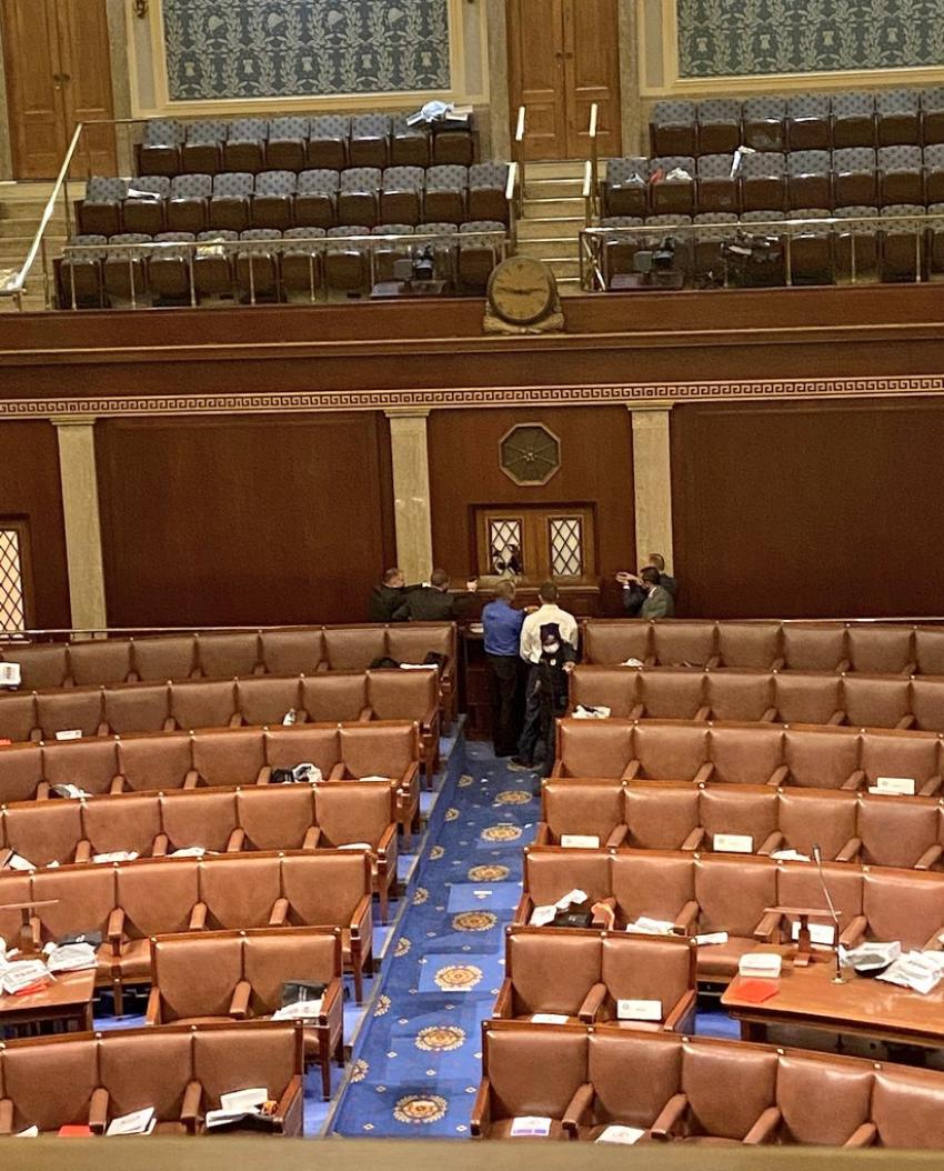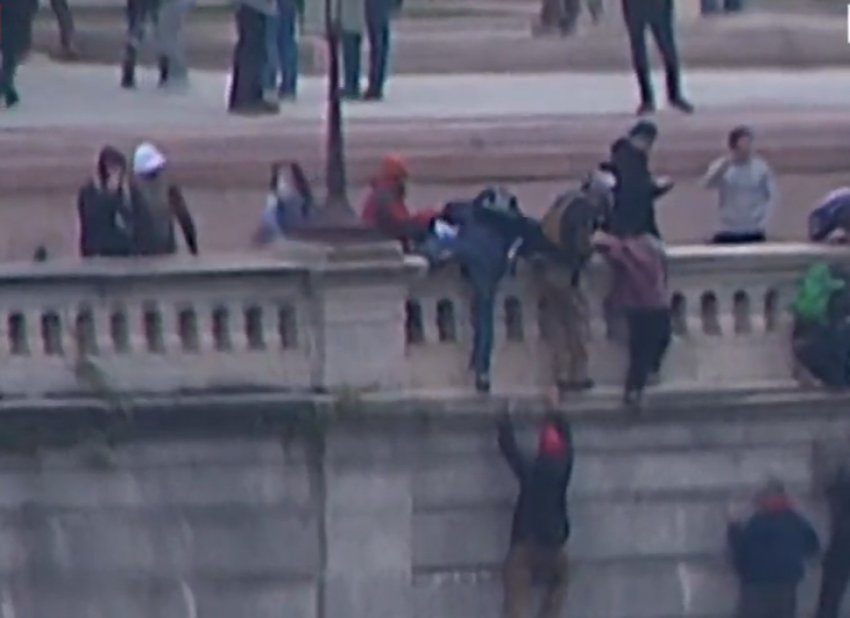 Police inside the Capitol building used tear gas to disperse dozens of demonstraters and footage showed police drawing their guns.
