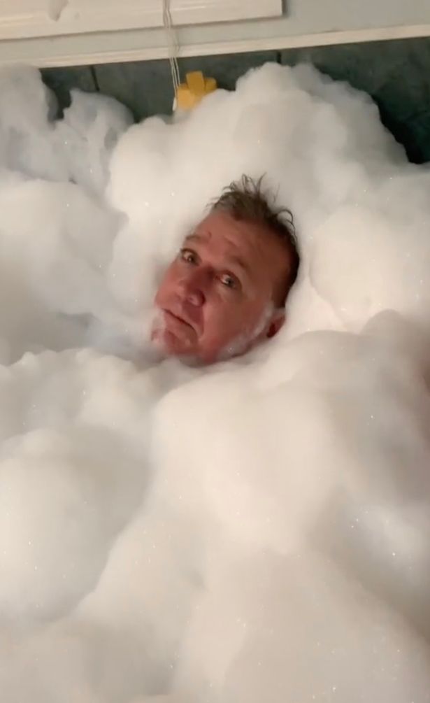 The clip of the unfortunate incident left people reeling - as it showed the man sitting sleepily in the bath while surrounded by suds.