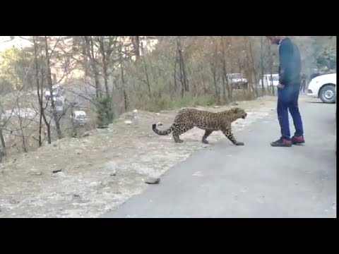 In the video, which was reportedly filmed at the Tirthan Valley in Himachal Pradesh, the big cat was seen walking up to a group of people standing on a roadside. While some people scrambled to get away, one stood still as the leopard approached and tried to climb him playfully. Another man was then filmed playing with the big cat in a scene that has raised eyebrows on social media.