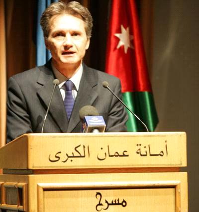 * Photo: Romanian Ambassador Radu Onofrei announces the launch of a Jordanian-Romanian civic partnership on Tuesday/ by Nader Daoud)