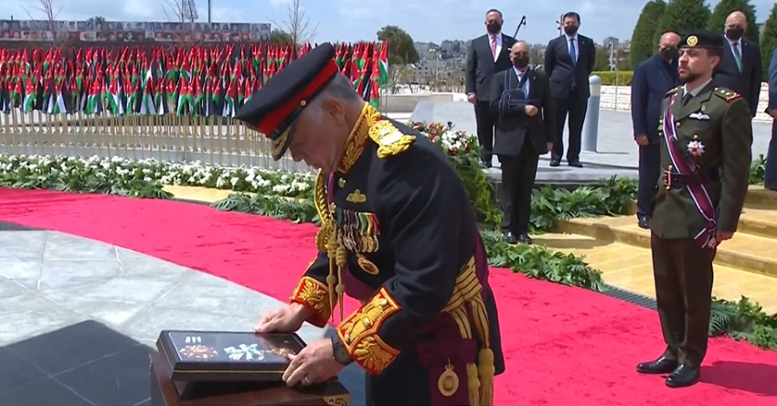 His Majesty King Abdullah, the Supreme Commander of the Jordan Armed Forces-Arab Army, accompanied by His Royal Highness Crown Prince Al Hussein bin Abdullah II, on Sunday visited the Martyr’s Memorial, in remembrance of martyrs’ sacrifices to the nation as it marks its centennial.