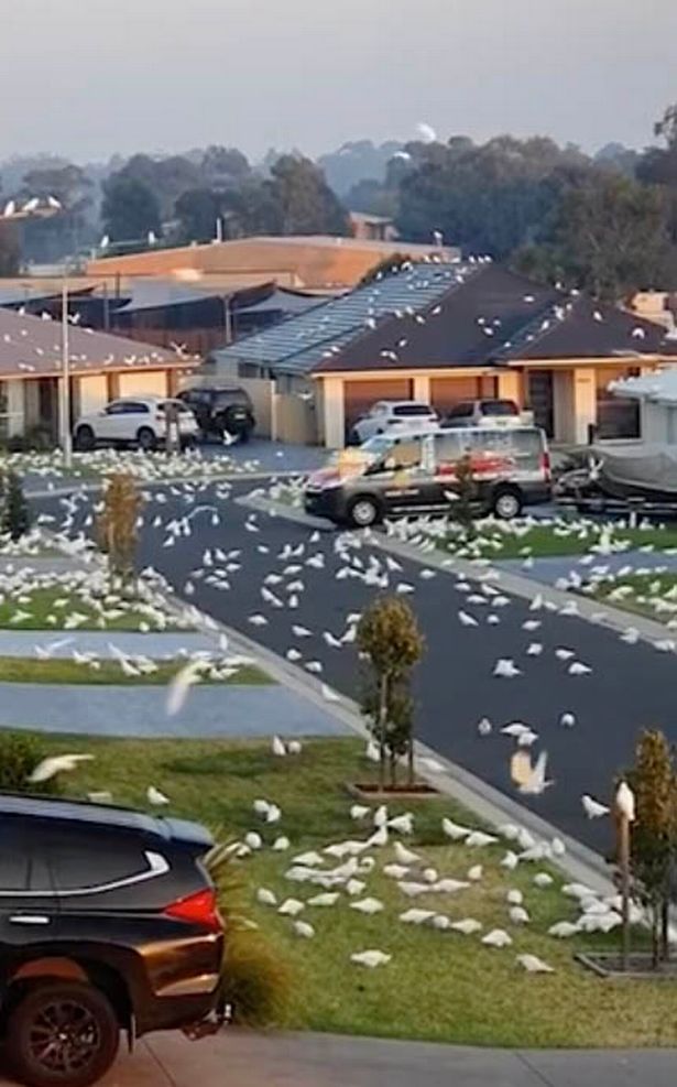 Residents living in a suburb town not far from Sydney woke up to what they called a "Hitchcockian" scene where thousands of corellas descended upon their roofs and drives.
