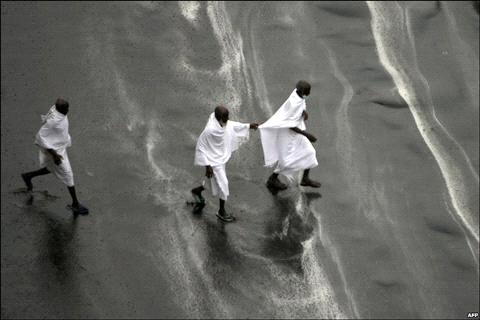 Heavy rains soaked pilgrims as they performed the pilgrimage rituals, caused flooding in low areas and soaked the grounds of a sprawling tent city that has been set up to house pilgrims.