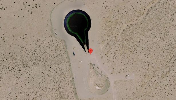 The area, in Lone Pine Unified School District California, is almost 150 miles from the Pacific Ocean but there appears to be a boat alongside the 340-foot teardrop-shaped depression that Twitter user CryptoSpawn believes could be a "landing indentation from a large craft".