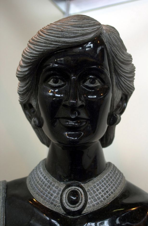 This black marble effigy of Diana stands outside of a funeral directors in Bloxwich, Birmingham.