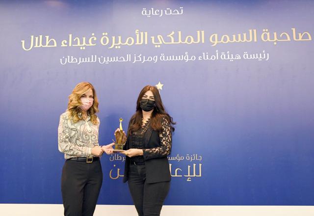 During the award ceremony, Princess Ghida said: "Thank you to every member of the media for your continuous support for the King Hussein Cancer Foundation and Center, and for your outstanding efforts during the COVID-19 pandemic to keep the cause of cancer in the minds of the public."