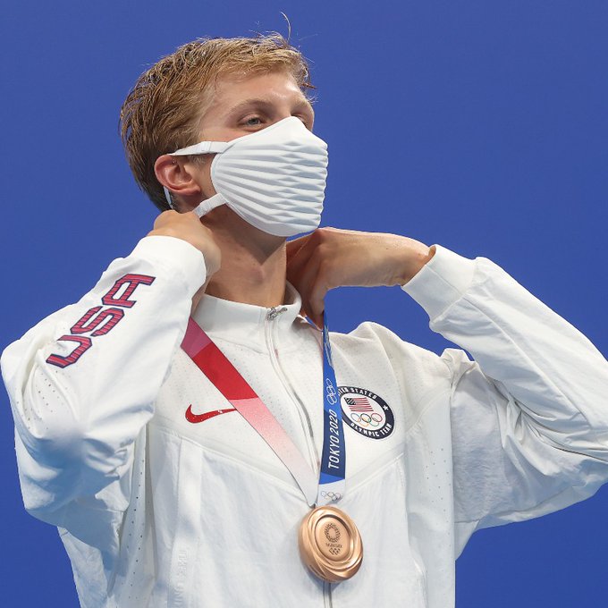 The image showed Kieran Smith of Team United States wearing the mask and posing with the bronze medal for the Men's 400m Freestyle Final on day two of the Games. The mask appears to be inspired by Origami, the art of folding papers popular in Japanese culture. However, social media users had a different take on the masks.