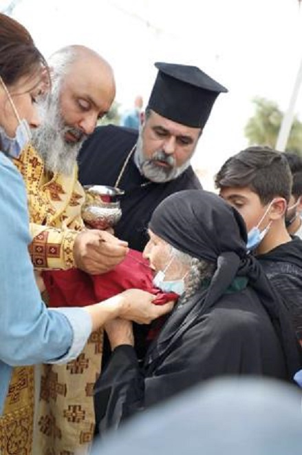 Tamam Haddad, an elderly member of the Greek Orthodox Church originally from Madaba, said that she “felt the spirituality of the church” during the mass and is “very happy” the church can now hold gatherings at the holy site after two years of pandemic closures. Haddad said that she attends every Mass at Tel Mar Elias.