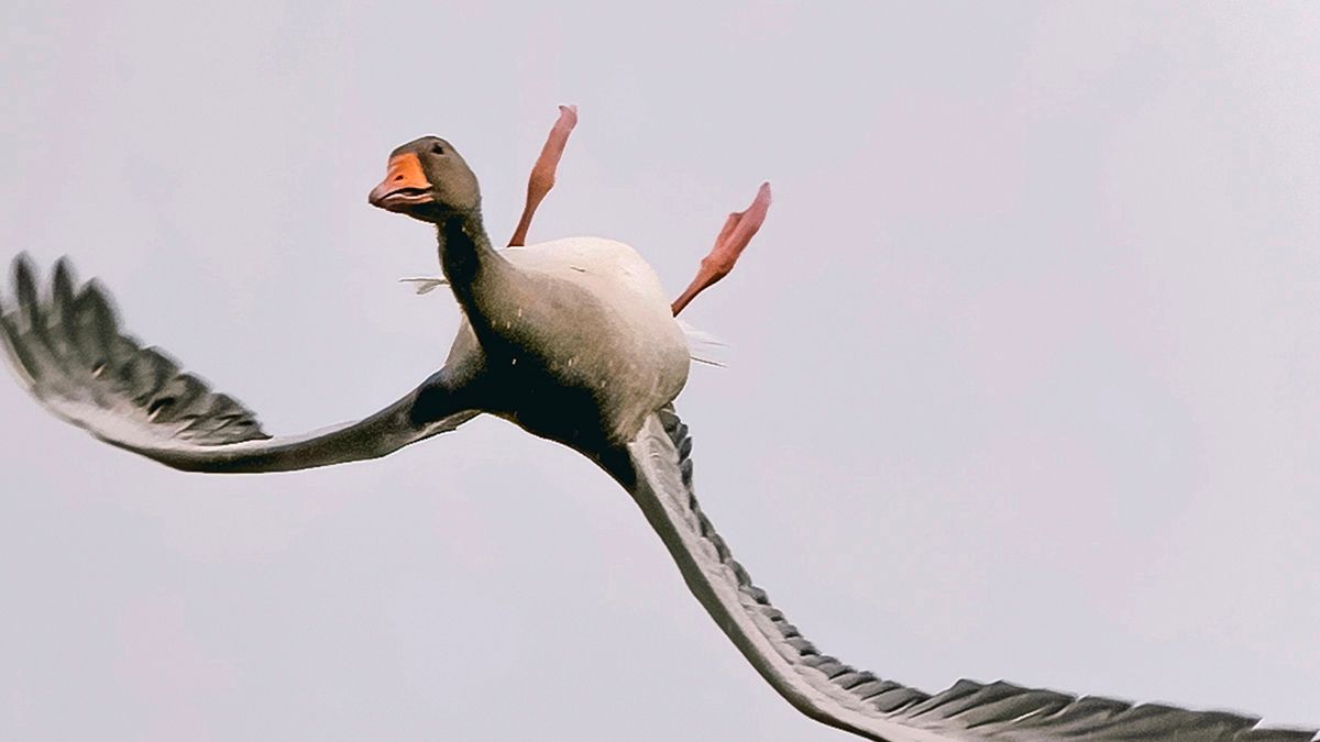 Ammon News - An amateur photographer captured a picture of a goose performing an unusual flying technique, where it appears to be upside down, and experts have said the goose was just showing off.