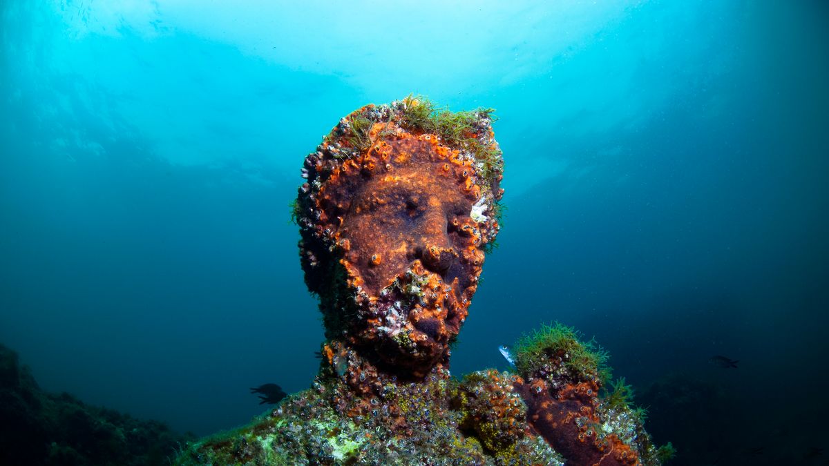 Although it’s not necessarily intended to be creepy, there’s something off about these weathered sculptures covered in barnacles.