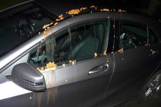 New photos released by police show four empty cans discarded near a doorstep, while another shows a grey car with sauce dribbling down the driver’s window, reports Hull Live.