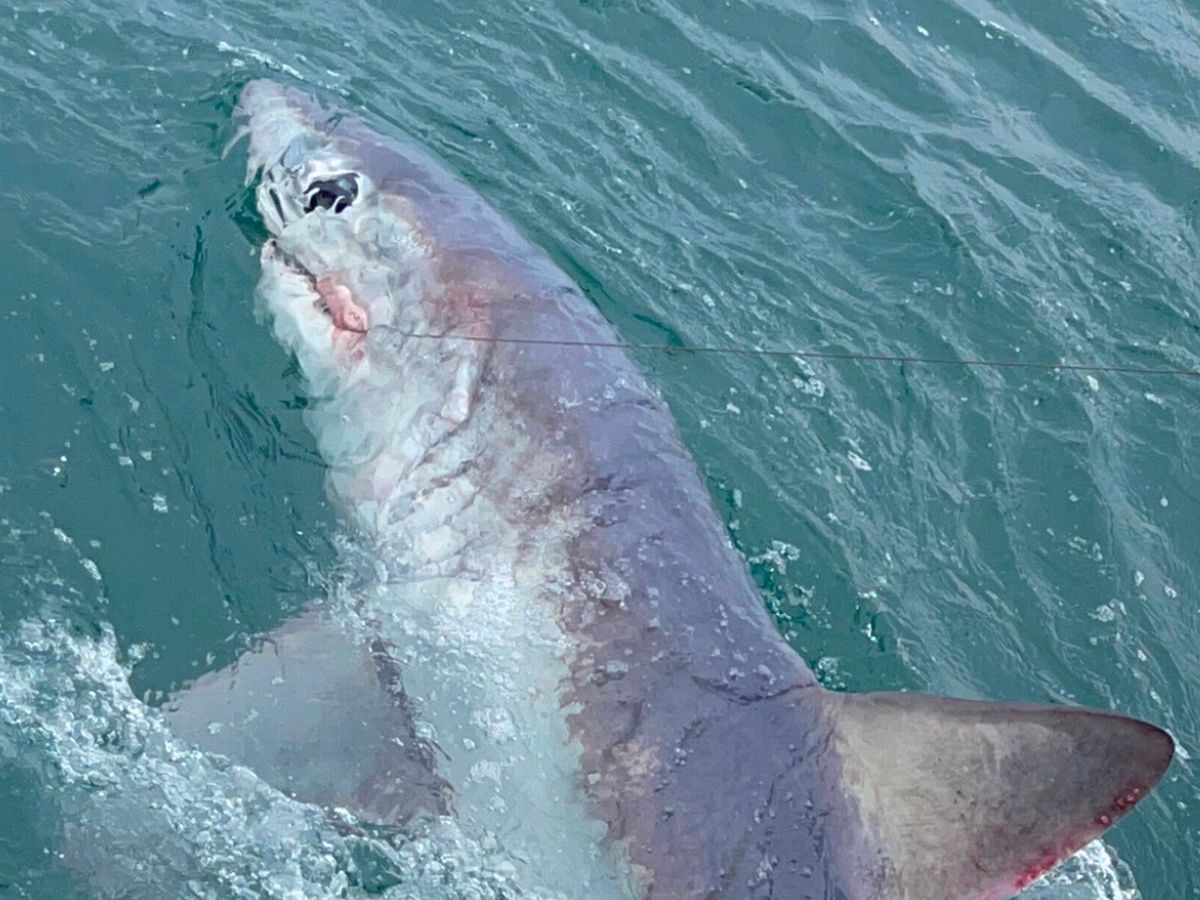 Ammon News - Simon Davidson said he wrestled with the porbeagle shark for an hour before he was able to reel it in.