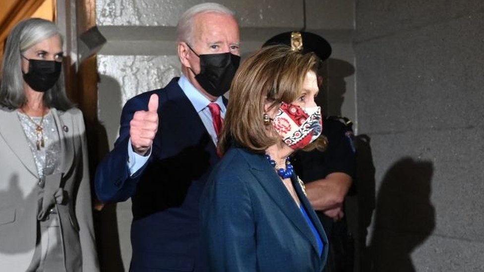 Some Democrats refuse to back the plan until a separate $3.5tn welfare and climate change bill is voted in, according to BBC.