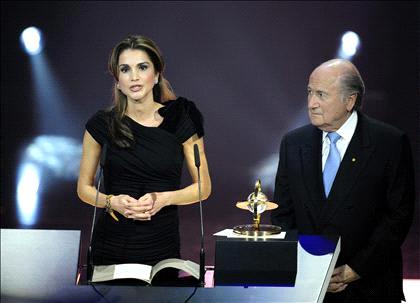 Ammon News - AMMAN - Her Majesty Queen Rania on Monday received the 2009 FIFA Presidential Award for contributions to football and society, in recognition of her commitment to the 1GOAL: Education for All campaign.