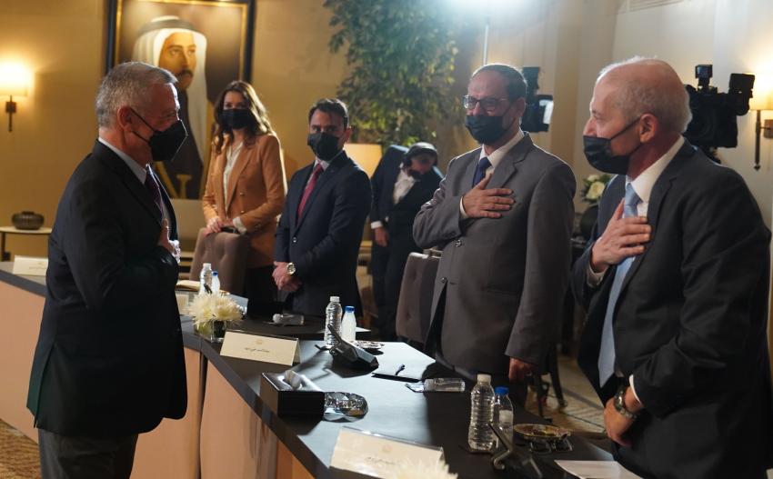 The meeting was also attended by the Director of the King's Office, Dr. Jaafar Hassan, Muath al-Zubi, adviser to His Majesty, Samah Hyari and Muayad al-Habashneh.