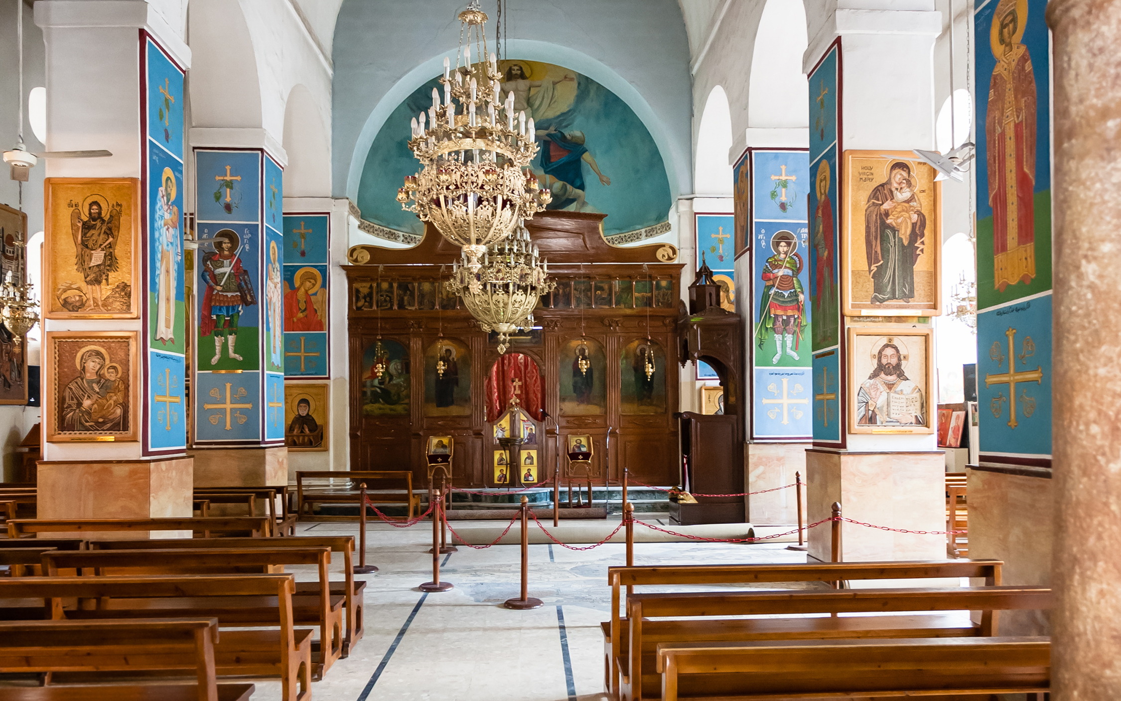 The Greek Orthodox church of St. George in Madaba houses some of the most beautiful icons in the region. But it is also the place where the most intriguing (and revealing) map of the Holy Land is found: the legendary “Madaba Map,” an intricate floor mosaic dated in the 6th century, the oldest cartographic depiction of the Holy Land preserved to the day. It covers most of the region, from Lebanon to the Nile delta, from North to South, and from the Mediterranean Sea to the Eastern Desert, from West to East. In it, more than 150 towns, villages, cities and places of interest are featured, including some exceptionally intriguing symbols that, according to some archaeologists, represent pilgrimage places.