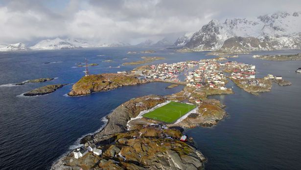 Drone footage reveals the hidden footballing gem, in northern Europe, stashed away in a fishing village in Norway.