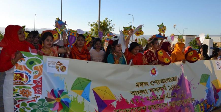 Ammon News - The Bangladeshi embassy in Jordan organised a rally for the first time in the port city of Aqaba on the occasion of Bengali New Year 1429.