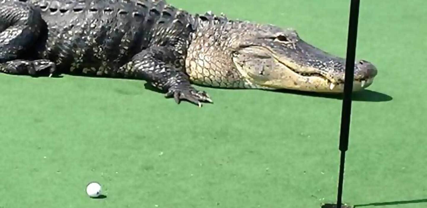 Ammon News - A group of golfers at a Florida course temporarily halted their game when a massive alligator went for a stroll across the fairway.