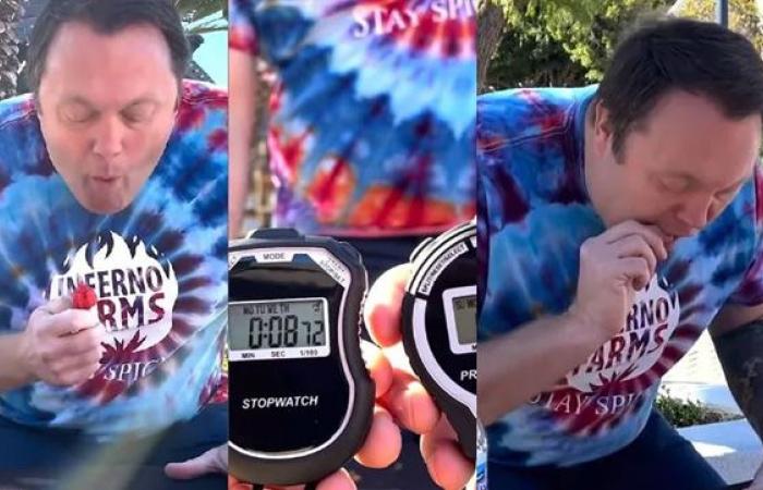 Ammon News - A California man put his love of spicy food to the limit when he broke a Guinness World Record by downing three Carolina Reaper chili peppers in 8.72 seconds.
