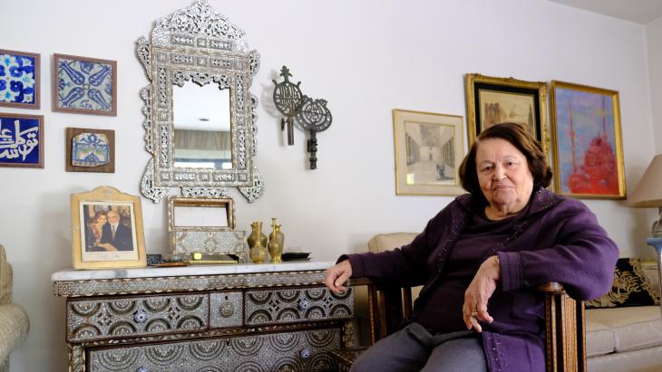 Her collection includes dresses embroidered with Palestinian flags and national symbols. Since Palestinian flags were banned in public during the first uprising against Israeli occupation in the late 1980s, women would embroider national symbols on their dresses.