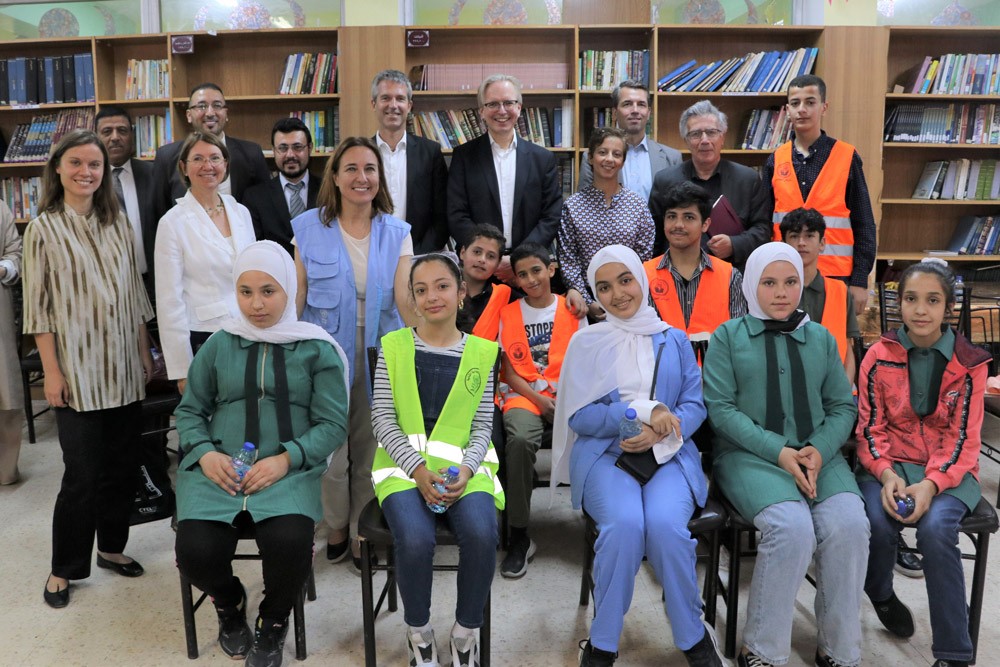 Members of the delegation were welcomed by the Director of UNRWA Affairs in Jordan, Marta Lorenzo, on behalf of the UNRWA Commissioner-General, Phillipe Lazzarini, and were briefed on the Agency’s education program, highlighting the need for Palestine refugee students to keep up with technological developments and digitalization in education. The delegation met with students from the UNRWA student parliament and had a lively interaction with them with questions focused on the most recent transformations in education and the learning process.