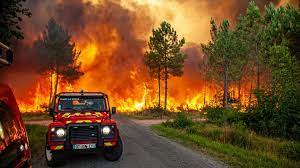 Ammon News - Residents and holidaymakers have fled towns and villages in France as fires are whipped up by high winds and tinder-dry conditions in several countries in Europe.