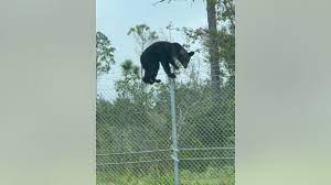 Kevin Dalrymple posted a video to Facebook showing the bear he spotted climbing the fence at Tyndall Air Force Base, located southeast of Panama City.