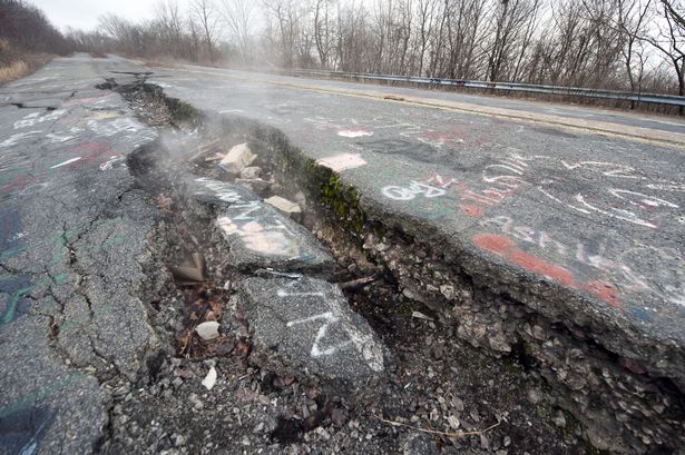Many attempts to extinguish the subterranean blaze have failed and noxious gasses such as carbon monoxide continue to seep out of the cracks in the crumbling ground, making it a dangerous place to live.